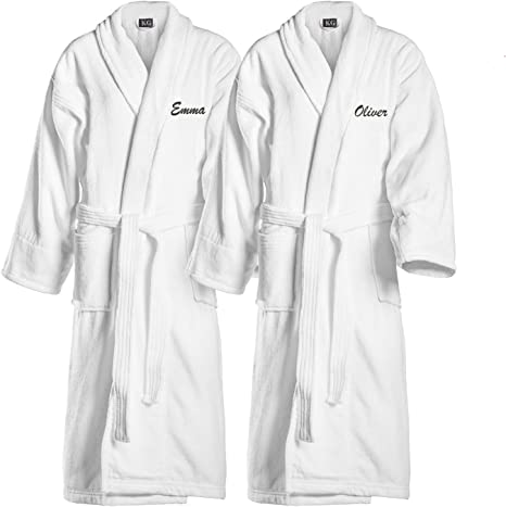 Kaufman - Personalized Terry Cloth Bathrobes 100% Cotton Embroidered Velour Shawl Set of Two Spa Robes 2-Pack (Names)