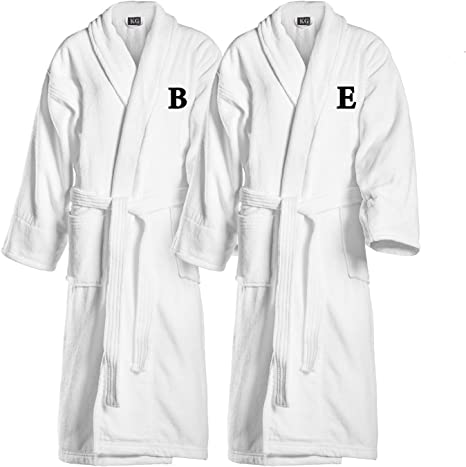 Kaufman - Personalized Terry Cloth Bathrobes 100% Cotton Embroidered Velour Shawl Set of Two Spa Robes 2-Pack (Initials)