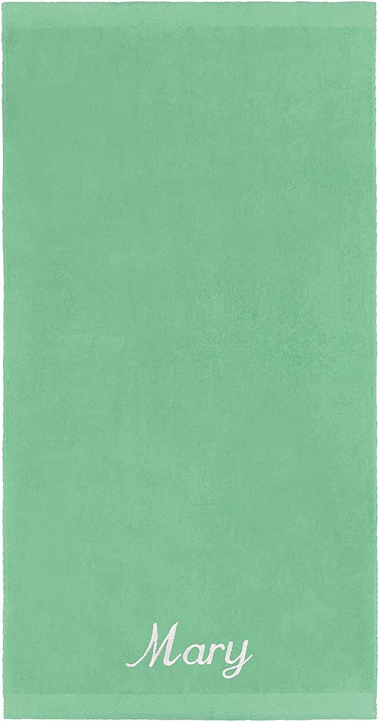 Kaufman - Personalized Velour Beach and Pool Towel 100% Cotton 30in X 60in Embroidered (Mint)