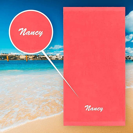 Kaufman - Personalized Velour Beach and Pool Towel 100% Cotton 30in X 60in Embroidered (Coral)