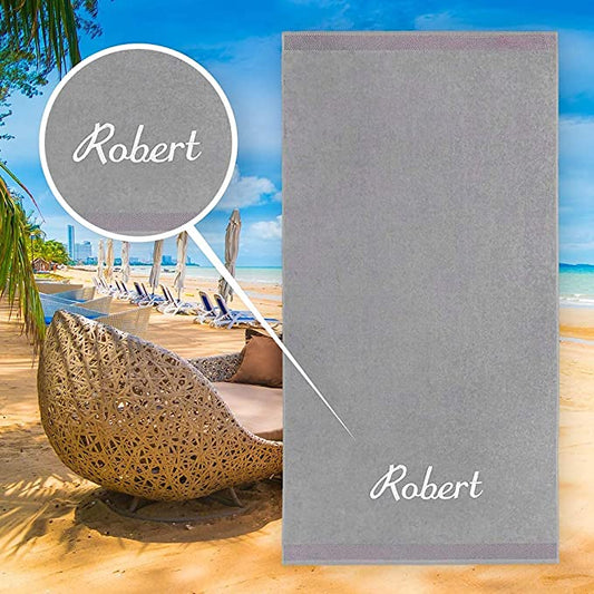 Kaufman - Personalized Velour Beach and Pool Towel 100% Cotton 30in X 60in Embroidered (Grey)