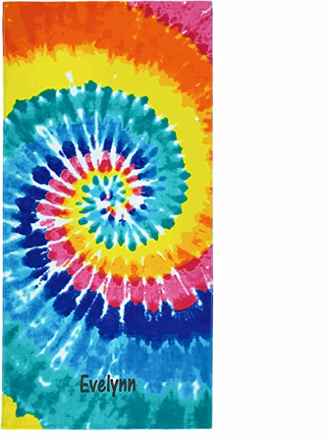 Kaufman - Personalized Printed Beach Towel 100% Absorbent Cotton, 30'' x 60'', Custom Embroidered Name (Tie Dye)