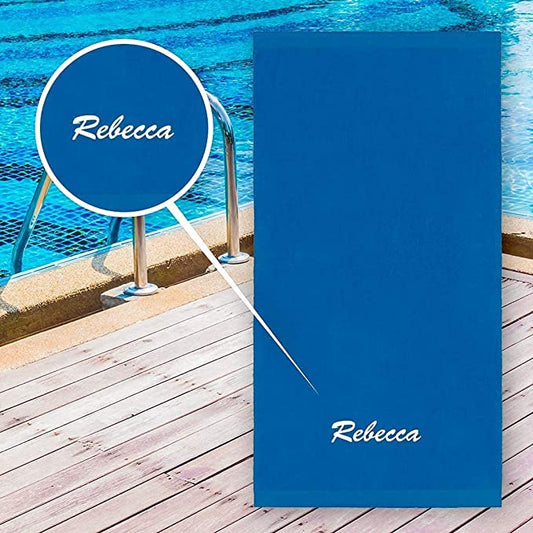 Kaufman - Personalized Oversized, 35" X 70", Solid Color, Velour Super Soft, Beach and Pool Towel, Easy Care, Extra Large, 100% USA Cotton, Embroidered Name (Blue)
