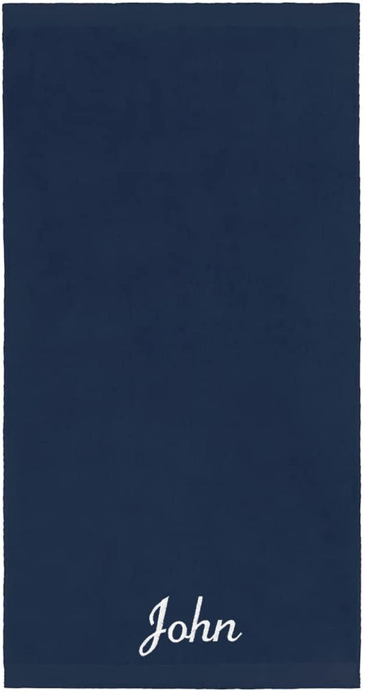 Velour Beach and Pool Towel 100% Cotton 30in X 60in Embroidered (Navy)